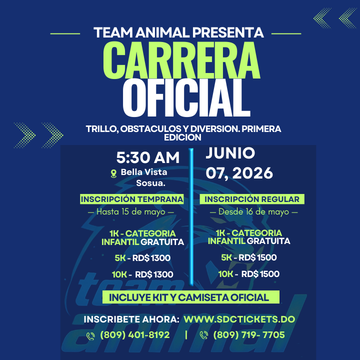 Aquí podrás inscribirte al evento Carrera Oficial Team Animal 2026.